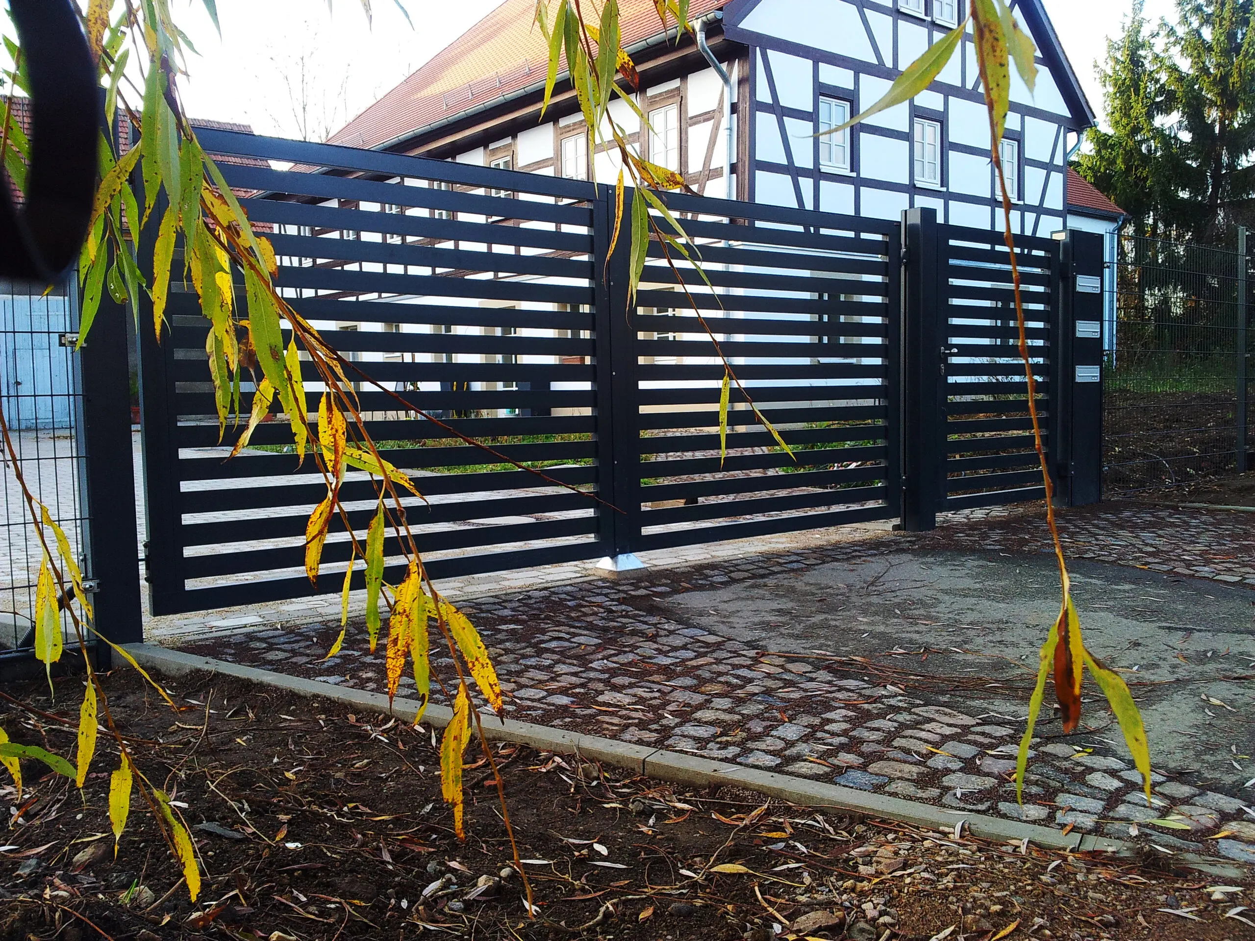 Abbildungen von Tor- und Zaunanlagen aus Aluminium